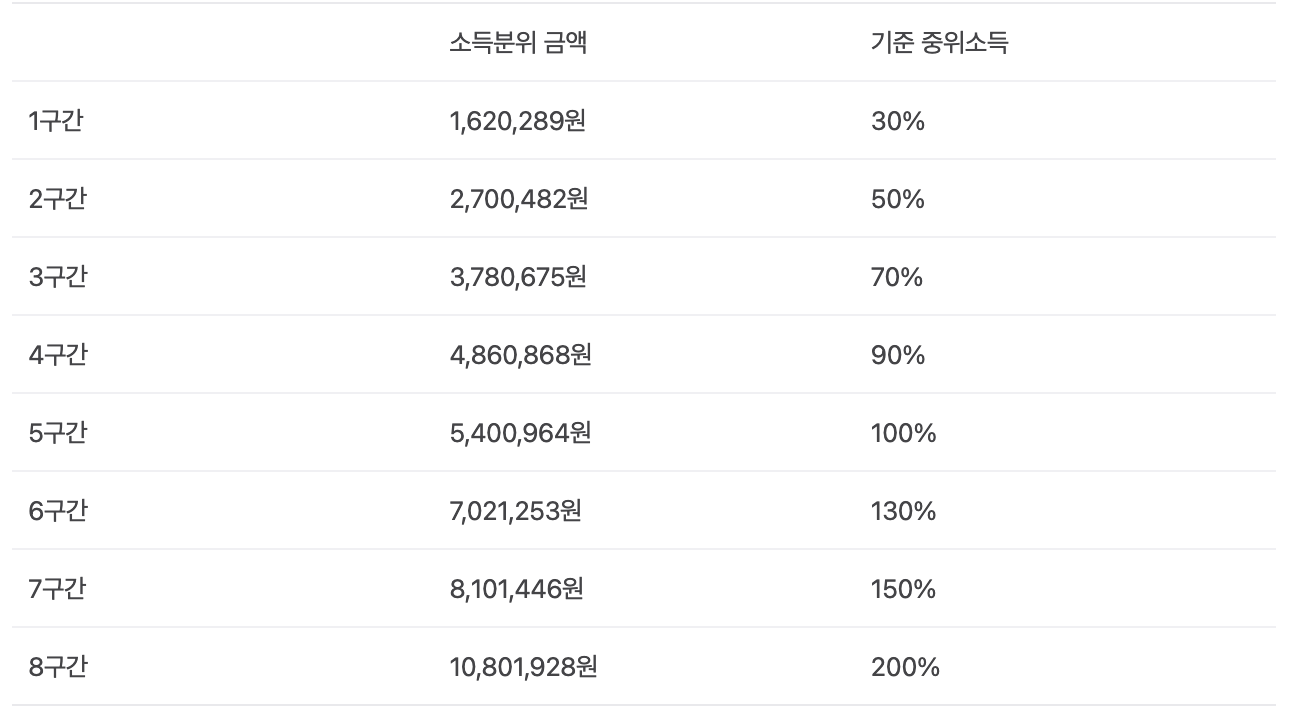 👉🏻 소득인정액이 기준 중위소득보다 낮으면 그 구간에 속하게 됩니다.